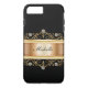 Elegante y elegante funda de smartphone para iPhone 6 Plus en un hermoso diseño de aspecto metálico dorado con joyas de diamante simuladas de alta gama, todas impresas digitalmente en la portada. Personalice el emblema de monograma diseñado para su nombre o iniciales de monograma para darle a su teléfono móvil su propio toque personal.