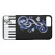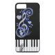 funda(clic para editar) Claves de piano con Black& notas y corazones de la música azul.funda, por Elenne Boothe