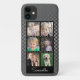 Este estuche para iPhone ofrece seis fotos personalizados para que usted agregue sus fotos familiares favoritas. El fondo es negro con un pequeño patrón de punto blanco. Texto Personalizado, cerca de la parte inferior, le permite agregar su nombre.