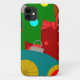 Este estuche de teléfono tiene un diseño Navidad de un collage de un árbol de Navidad, un adorno, un caldo de leña, un regalo y un chico de pan de jengibre.