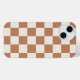 Estuche de diseño para teléfono de impresión de tablero de ajedrez boho en naranja quemado y colores crema. Utilice las herramientas de diseño para agregar su propio monograma, nombre u otro texto, o cambie el color de fondo para crear uno único de los tipos de cobertura del dispositivo.