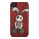 El blanco rellenó el conejito con los ojos del botón y la impresión de naipe. Arte original: Lápiz, coloreado en Photoshop.