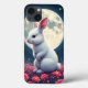 Un bonito conejo sentado en un campo de flores rosadas bajo la luz de la luna de ensueño, los delicados detalles crean una sensación cálida y cómoda.