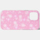 Los copos blancos de nieve en un fondo rosado hacen que este estuche de teléfono de vacaciones sea tan bonito como sea posible, tan festivo para las vacaciones y la temporada invernal.