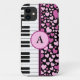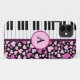 Guay y corazones rosados lindos y cajas de encargo de la casamata del iPhone 4/4S del monograma del piano para los pianistas, los pianistas y los teclistas. Casos y regalos únicos y originales del iPhone del piano para los cumpleaños, el el día de San Valentín, el navidad o cualquier ocasión.