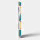 Este estuche de teléfono tiene un diseño de cuadrados divididos en triángulos y coloreados en colores retro.