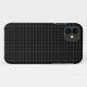 Un estuche Iphone con un diseño de patrón cuadrado sutil, gris oscuro y negro.