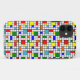 Este estuche para iPhone tiene un diseño Bauhaus de una rejilla con cuadrados y rectángulos en rojo, verde, azul, naranja, azul claro, amarillo y rojo.