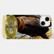 Este divertido estuche para iPhone & tiene un caballo de cuarto negro con un arnés naranja al mirarte por la ventana de la cocina. La ventana se esconde debajo de él y la pared grisácea también. Pueden ver las hojas de otoño amarillas en el arce afuera de la ventana.