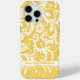 Casos de iPhone de Damasco floral de color amarillo elegante victoriano