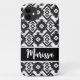 diseño tribal en blanco y negro bonito, el nombre puede ser personalizado. diseño de boho azteca de bonito en blanco y negro. Personalice su nombre y color para el nombre y el cuadro. No se puede cambiar el gráfico posterior. Bonito para proteger tu teléfono de daños. Gran idea de regalo o de peluche de medias.