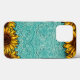 Funda De Case-Mate Para iPhone Cuero turquesa con girasoles brillantes y soleados