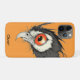 Expressive illustration of a bird’s head with striking orange eyes and detailed feathers against a vivid orange background. The dynamic composition and bold contrast make this iPhone case a standout piece for those who appreciate artistic, animal-inspired designs with character and intensity.