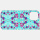 Funda De Case-Mate Para iPhone Cute Girly Purple Flower Pattern on Aqua Blue