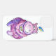 Este es un original cuadro de un medio mixto de un capo caprichoso púrpura con un pájaro volador en la cabeza.