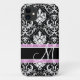 Funda De Case-Mate Para iPhone Damasco blanco y negro elegante con el monograma
