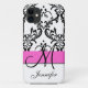 Funda De Case-Mate Para iPhone Damasco Monogramado de Swirls Blancas Pink