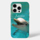 Este estuche de teléfono muestra una foto de un delfín sonriente en aguas acuáticas. Personalizar con su nombre.