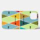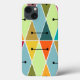Este estuche de teléfono tiene un diseño moderno de mediados de siglo de diamantes y triángulos en colores retro.