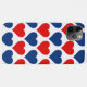 Muestra tu patriotismo con este magnífico estuche de teléfono decorado con corazones rojos y azules, de fondo blanco.