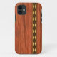 El aspecto de una bonita banda de madera encastrada a través de una rica madera roja. Una cubierta perfecta para el iphone de cualquier persona que trabaje con madera o simplemente aprecie la hermosa madera.