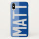 Haz que tu elección de nombre se muestre con audacia en un estuche de dos tonos. Ejemplo muestra el nombre Matt. Personaliza con tu elección de nombre corto.