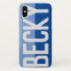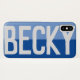 Haz que tu elección de nombre se muestre con audacia en un estuche de dos tonos. Ejemplo muestra el nombre Becky. Personaliza con tu elección de nombre corto.