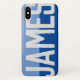 Haz que tu elección de nombre se muestre con audacia en un estuche de dos tonos. Ejemplo muestra el nombre James. Personaliza con tu elección de nombre corto.