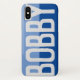 Haz que tu elección de nombre se muestre con audacia en un estuche de dos tonos. Ejemplo muestra el nombre Bobby. Personaliza con tu elección de nombre corto.