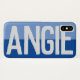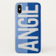Haz que tu elección de nombre se muestre con audacia en un estuche de dos tonos. Ejemplo muestra el nombre Angie. Personaliza con tu elección de nombre corto.