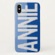 Haz que tu elección de nombre se muestre con audacia en un estuche de dos tonos. Ejemplo muestra el nombre de Annie. Personaliza con tu elección de nombre corto.
