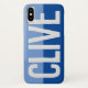 Haz que tu elección de nombre se muestre con audacia en un estuche de dos tonos. Ejemplo muestra el nombre Clive. Personaliza con tu elección de nombre corto.