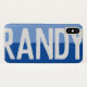 Que tu elección de nombre cristiano se muestre audazmente en un estuche de dos tonos. Ejemplo muestra el nombre Randy. Personaliza con tu elección de nombre corto.