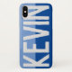 Haz que tu elección de nombre se muestre con audacia en un estuche de dos tonos. Ejemplo muestra el nombre Kevin. Personaliza con tu elección de nombre corto.