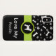 Muestra cuánto amas a tu mascota de raza Caniche con esta funda de teléfono inteligente elegante y moderna diseñada con huesos de perro lindos y patrón de huellas de patas y texto que puedes personalizar con tu propio mensaje de amor para tu mascota familiar. Incluye una silueta de un Caniche en un emblema en la funda.