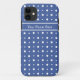Funda De Case-Mate Para iPhone Divertidos puntos de Polka Blanco sobre fondo azul