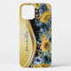Funda De Case-Mate Para iPhone dorado amarillo girasol Floral Monograma nombre