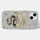 Dragón con estrellas de oro y plata por todas partes. El color de fondo es el personalizable. iPhone 15.