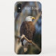 la caja máxima del teléfono del iPhone XS que ofrecía una imagen de Eagle calvo se encaramó en una rama. La imagen es de una imagen que tomé en el parque zoológico esta última primavera (2018).