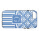 Funda De Case-Mate Para iPhone Elegante Damasco de Art Deco Azul y Blanco