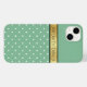 Funda De Case-Mate Para iPhone Elegante Mint Green & White Polka Dots Gold Ribbon