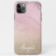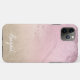 El diseño personalizado de este estuche para iPhone bonito incluye textura de mármol purpurina color rosa rosa rosa rosado gradiente, textura de oro falso y fuente caligráfica elegante. Personalice el producto con su nombre o cualquier otro texto.