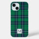 Elegante Monograma Green Plaid iPhone 15 Funda
