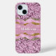 Funda De Case-Mate Para iPhone Elegante purpurinoso floral Monograma dorado púrpu