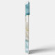Los elegantes estuches para iPhone Smart Phone de color oro de flores blancas simples y de lujo para iPhone tienen una flor blanca simple con elegantes acentos de Relieve metalizado dorado sobre un suave fondo de color azul. Un regalo perfecto para la madre por el Día de la Madre, cumpleaños y Navidades. Diseñado por ©Evco Studio www.zazzle.com/store/evcostudio