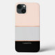 Personalice fácilmente este moderno estuche para iPhone de patrón rayado de bloques de color minimalista. Añade tu nombre, monograma o iniciales. Presenta un diseño de colores elegante y elegante con rayas de oro rosa femeninas.