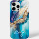 Los Fundas Modern Elegant Blue Gold Marble Personalized Name iPhone 15 Pro Max presentan su nombre personalizado en una elegante tipografía de escritura caligráfica sobre un fondo moderno de mármol azul y oro. Un regalo perfecto para su cumpleaños, madre para el Día de la Madre, hermana o mujer para Navidades y vacaciones. Diseñado por ©Evco Studio www.zazzle.com/store/evcostudio