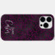 Estuche elegante magenta o iPhone de leopardo negro oscuro con tipografía de personalizable en letra de escritura a la moda y personalizado con tu nombre.