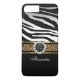 Elegante banda de cebra salvaje y Leopard Black Gold White, Jewel Perla de Diamond. Patrón animal Imprimir negro y oro, joya falsa. Elegante Funda de teléfono móvil elegante Girly para mujeres chica Añadir nombre inicial Purpurina (Se aconseja que la imagen se muestre más oscura en el Funda) Fabuloso producto para mujeres, Chicas, Zizzago creó este diseño POR FAVOR NOTE todas las imágenes planas! ¡¡¡NO tienen verdadero Purpurina, joyas de diamantes ni golpes de verdad!!!