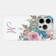 Elegante Monograma M Pink & Aqua Watercolor Rosa Floral iPhone 15 Pro Funda.